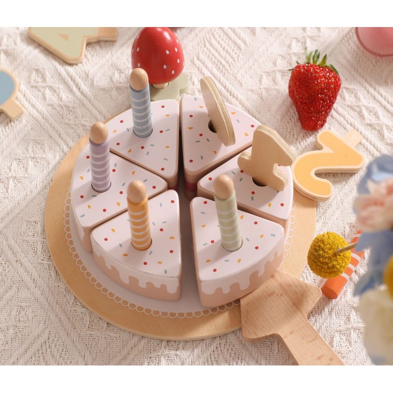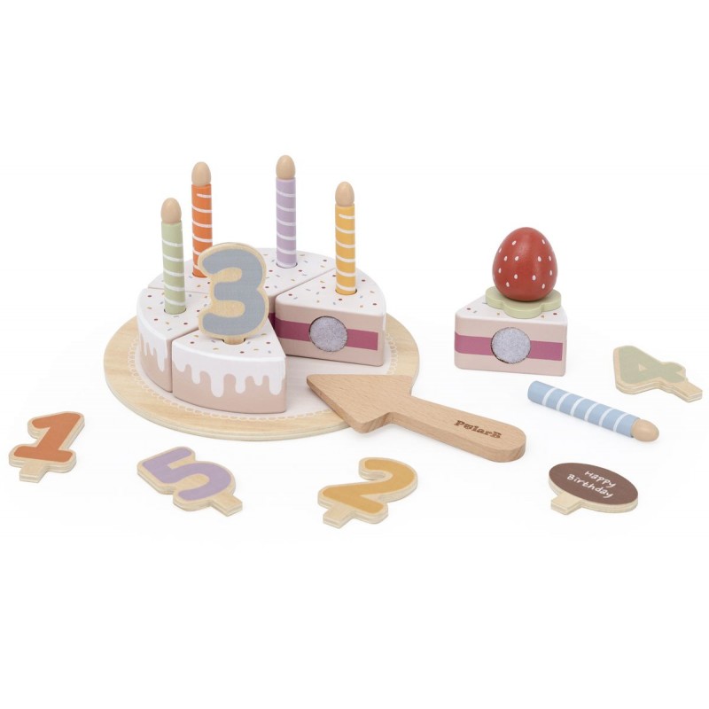 Fêter son anniversaire est un moment symbolique que les enfants adorent vivre et revivre ! Avec ce gâteau d’anniversaire en bois, composé de 6 parts à découper et de 14 accessoires (bougies, toppings, assiette, spatule, etc.), les tout-petits s’amusent à préparer la fête, à décorer le gâteau et à souffler les bougies ! Une belle occasion pour jouer à « faire comme les grands », tout en développant leur motricité fine en manipulant les pièces, et en stimulant leur imagination à travers le jeu d’imitation.