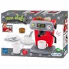 Un bon café comme les grands avec 1 percolateur, 1 busette vapeur, 3 variétés de café, 2 tasses, 2 sous-tasses, 2 cuillères et 1 pot à lait.