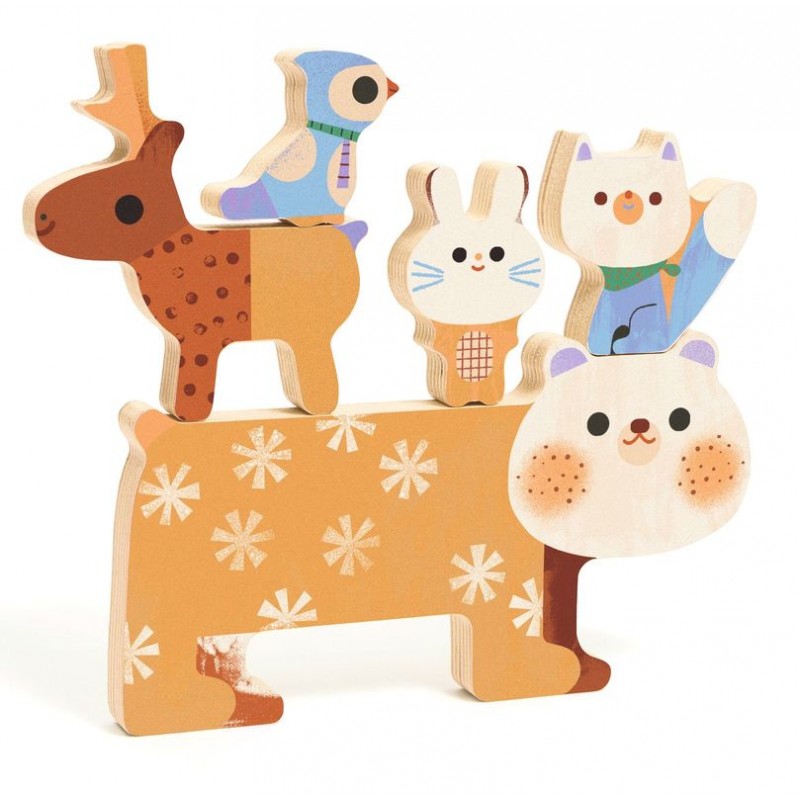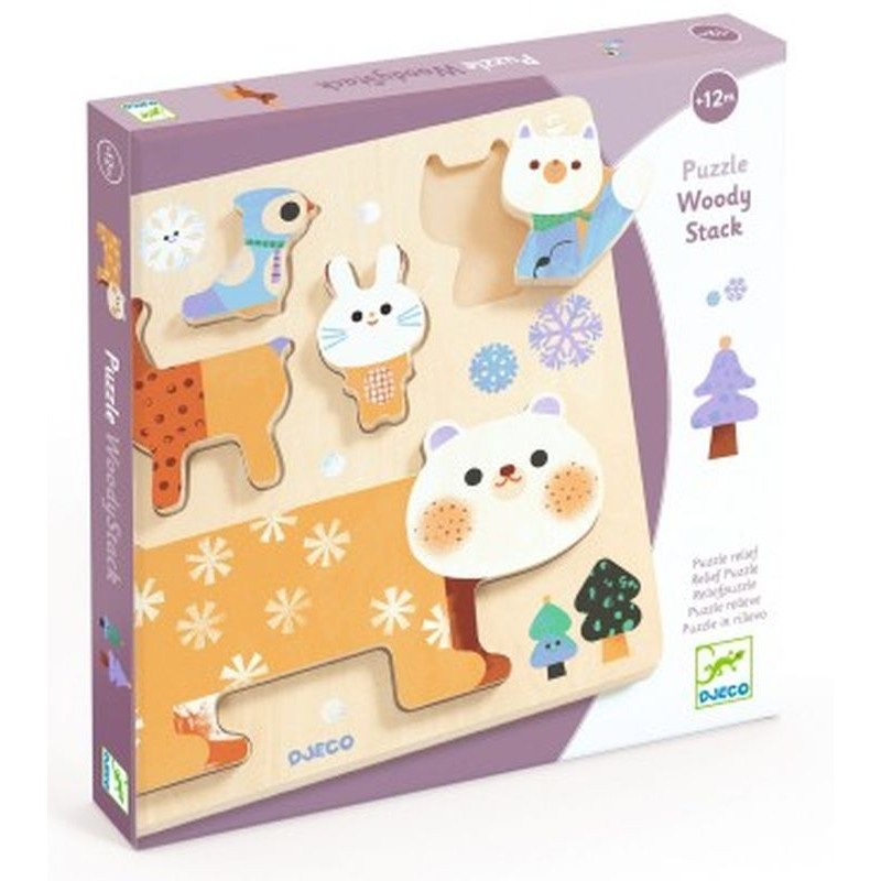 WoodyStack est un puzzle d'encastrement de 5 pièces en bois sur le thème des animaux. Les pièces sont épaisses et tiennent debout, ce qui permet une prise en main facile par les tout-petits. L’enfant peut ensuite les empiler et créer des compositions d'animaux. Ce puzzle devient alors un vrai jeu d’équilibre et de créativité. WoodyStack propose à la fois une activité d'encastrement et d'empilement qui stimule la motricité fine, et la coordination oeil-main.