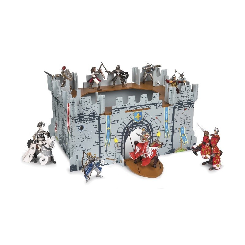 Un château médiéval pour y mettre en scène ses figurines. Les différentes pièces du château s'assemblent facilement par le biais d'encoches, le pont levis s'ouvre et se referme, un chemin de guet permet aux guetteurs d'anticiper tout assaut ennemi. Pour faire un retour en arrière au temps des chevaliers.