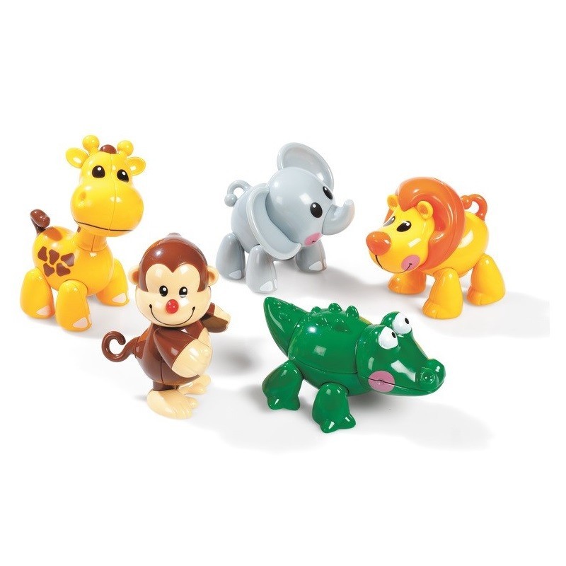 Cet ensemble First Friends comprend 5 animaux safari; un lion, un éléphant, un singe, une girafe et un crocodile.