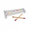 Contenu : 1 xylophone en métal à 12 lames (38,5 x 16 x 4,5 cm) et 2 baguettes en bois.