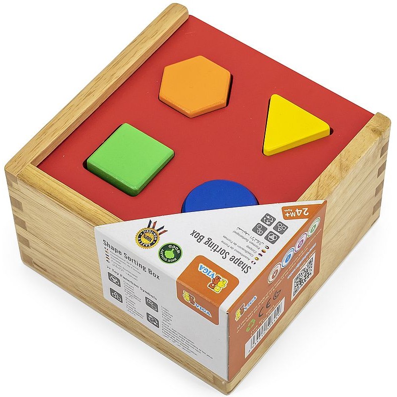 Boîte à formes classique en bois. Le matériel est simple avec 4 sortes de forme à insérer dans la boîte. L'enfant cherche la bonne entrée pour chaque type de pièce. Pour récupérer les formes en bois, l'enfant doit faire glisser le couvercle. Un jeu de base pour la crèche ou la maison, d'un excellent rapport qualité / prix!