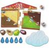 Premier jeu de coopération pour mettre les animaux de la ferme à l'abri de la pluie! Chaque joueur à son tour jette le dé. S'il montre un animal, il le prend et le met à l'abri. Si le dé indique la ferme, il peut mettre à l'abri l'animal de son choix. Mais si le dé montre une goutte, le joueur en ajoute une au nuage, la pluie menace! Tous les joueurs gagnent la partie si les animaux sont mis à l'abri avant que le nuage soit rempli de gouttes. La variante se joue avec un dé couleur, qui va demander aux enfants de faire une association entre la couleur et l'animal. Un jeu tout simple, parfait pour initier les plus jeunes aux jeux de société et apprendre à reconnaître les formes, les couleurs, attendre son tour, faire ses premiers choix, etc.