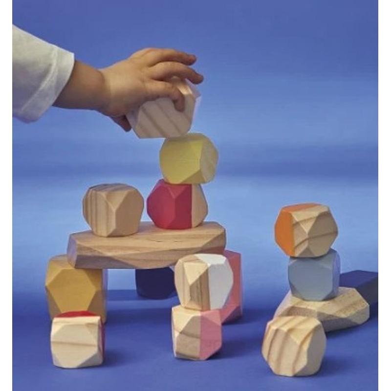 Ces pierres à empiler invitent les jeunes enfants à explorer les formes, les volumes et l’équilibre à travers la manipulation. Taillées comme de véritables petites pierres, elles permettent à l’enfant d’empiler librement, d’ajuster ses gestes et de créer ses propres constructions. Ce jeu soutient le développement de la motricité fine, de la coordination œil-main, tout en laissant une place importante à l’imagination et à la créativité.
