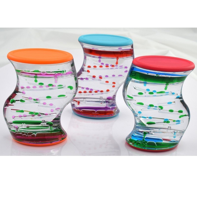 De grosse gouttelette sphériques, contient de l'huile et de l'eau colorées qui roulent en ligne dans un escalier en colimaçon. Coloris assortis. Dim. 7.5 x 4 x 13.5cm. Tous les matériaux utilisés dans la fabrication de nos produits liquides sensoriels sont dans les limites autorisées fixées par le règlement européen sur la classification, l'étiquetage et l'emballage (CLP 2008). En plastique résistant aux chocs. Durée environ 4 minutes et 20 secondes ! Vendu à l'unité.