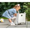 Landau en bois pour poupée. Ce jouet est fourni avec ses accessoires: un matelas doux gris/blanc, une couverture, un coussin moelleux et un sac de rangement pour les accessoires de la poupée, créant une expérience de jeu complète. Il est conçu pour accueillir une grande variété de poupées. Fabriqué avec soin, ce landau en bois est un jouet durable, stimulant le développement des compétences sociales et motrices.