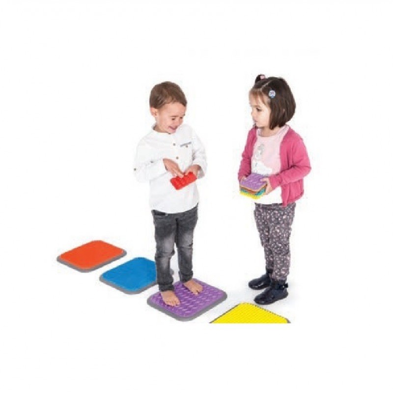 Elles sont composées avec des matières différentes (picots fin, gros picots, rainures fine, ligne épaisse, trous et lignes courbes) pour permettre de stimuler les sens des enfants.