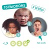 Dans une petite mallette, on trouve 30 cartes rondes en carton épais et résistant, exprimant les 10 émotions de base (joie, curiosité, admiration, sécurité, tristesse, colère, dégoût, peur, culpabilité, surprise), avec trois degrés d’intensité pour chacune d’elles, et 5 cartes « trèfle », en guise de joker pour certaines activités.