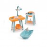 cet ensemble regroupe 1 chaise-haute, 1 table à langer et 1 baignoire accompagnées de leurs accessoires.