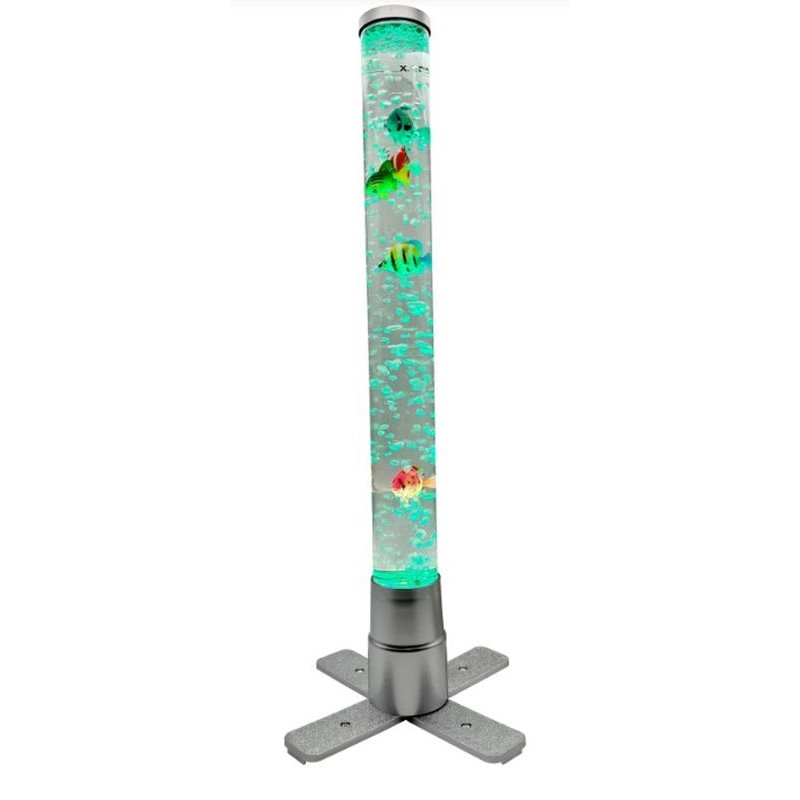 Cette colonne sensorielle de 60 cm crée un univers visuel apaisant grâce à ses poissons colorés qui montent et descendent au rythme des bulles, tandis que la lumière LED change progressivement de couleur. Le mouvement régulier de l’eau et la variation lumineuse transforment immédiatement l’atmosphère d’une pièce en un espace calme et rassurant. Utilisée dans un espace sensoriel, cette lampe devient un repère visuel qui facilite le retour au calme, aide à diminuer l’anxiété et soutient la concentration.